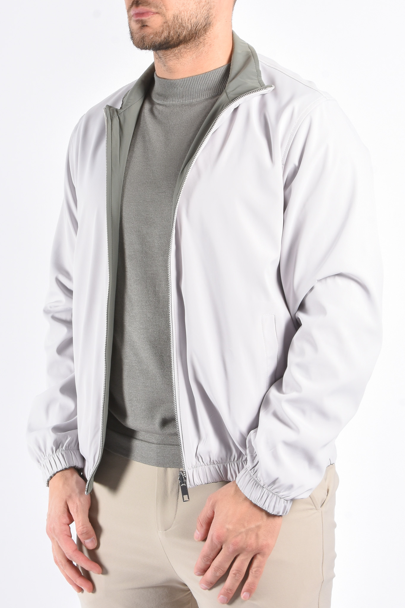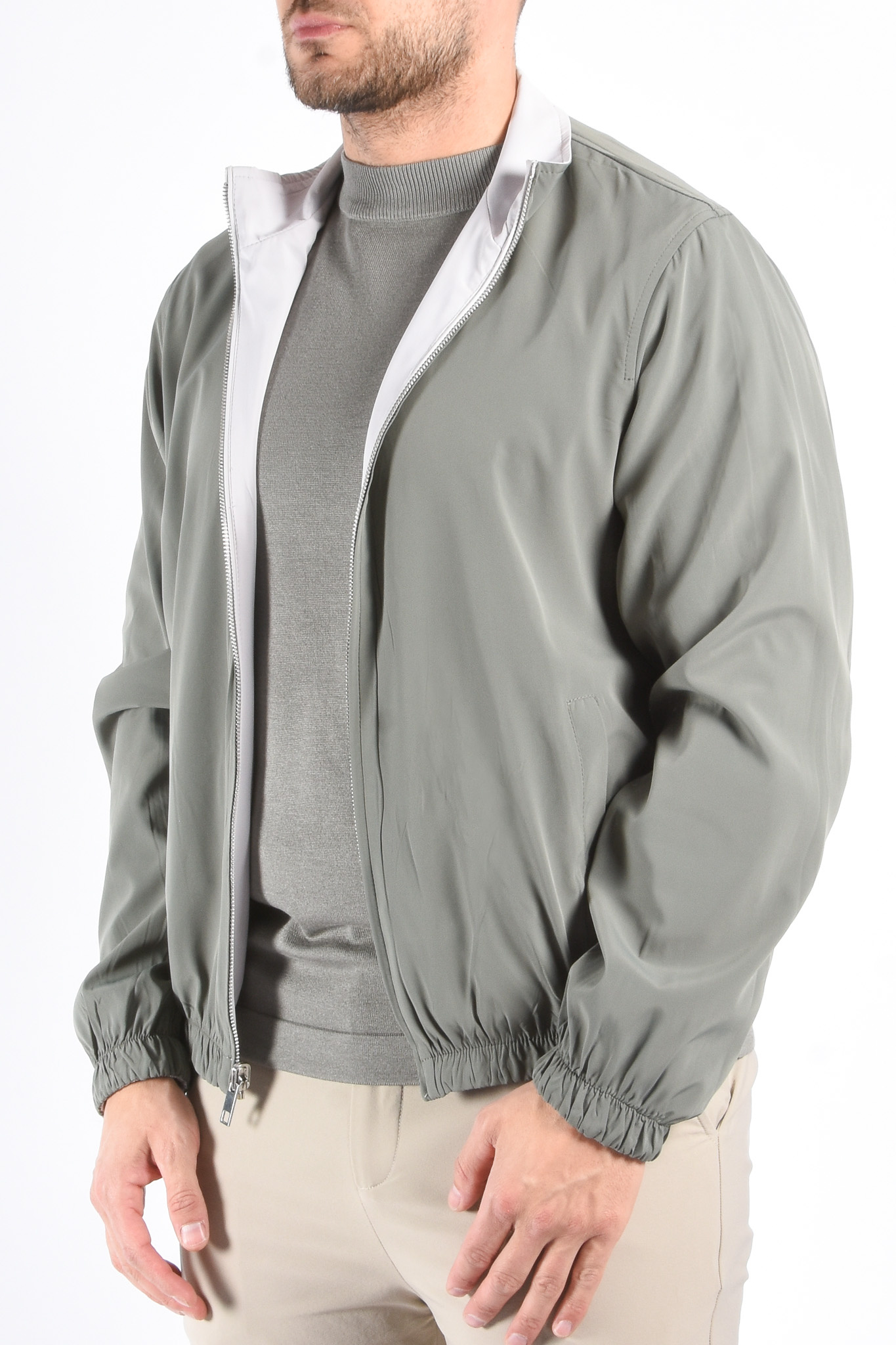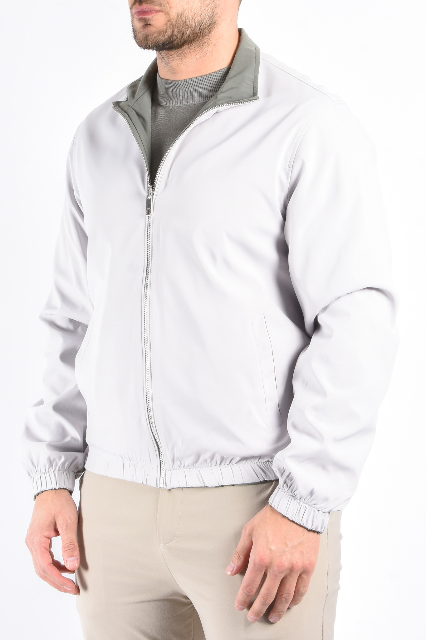 ProductomschrijvingPremium Reversible Jacket "Vazio" Greenish / Light GreigeModel: 179cm / 85kg Draagt maat L