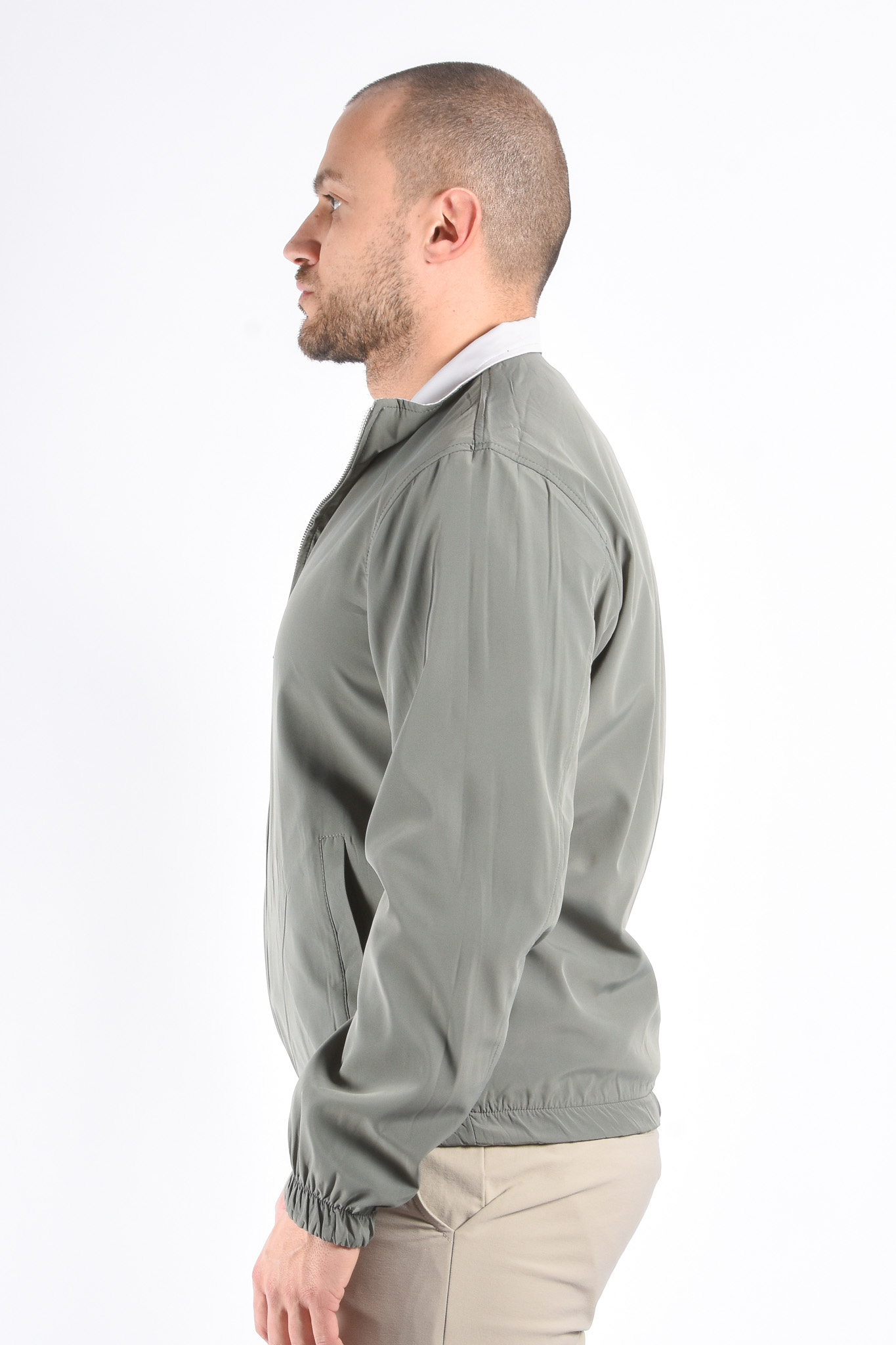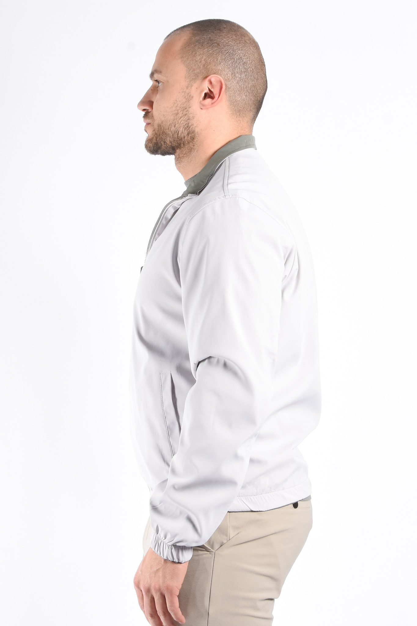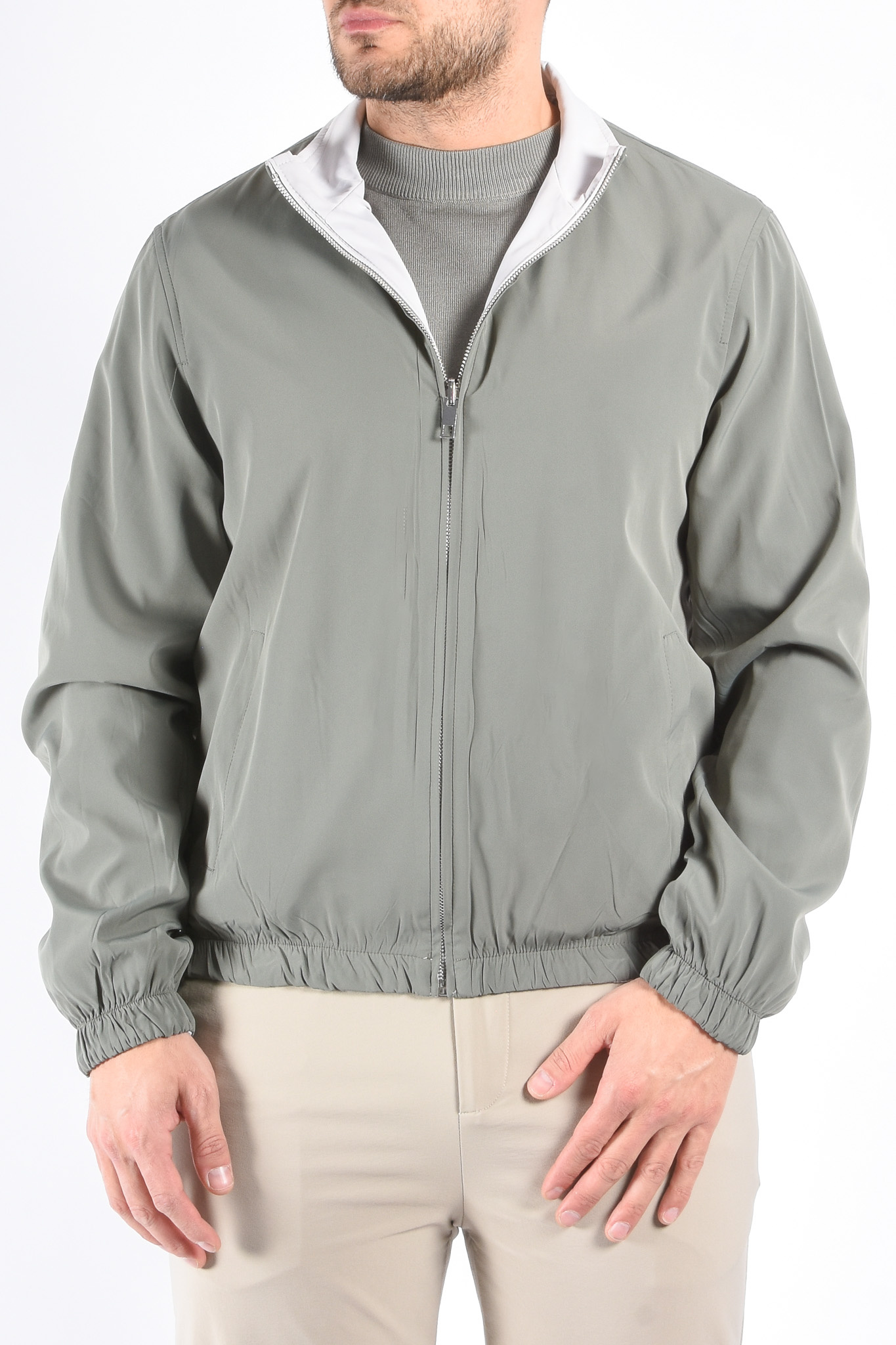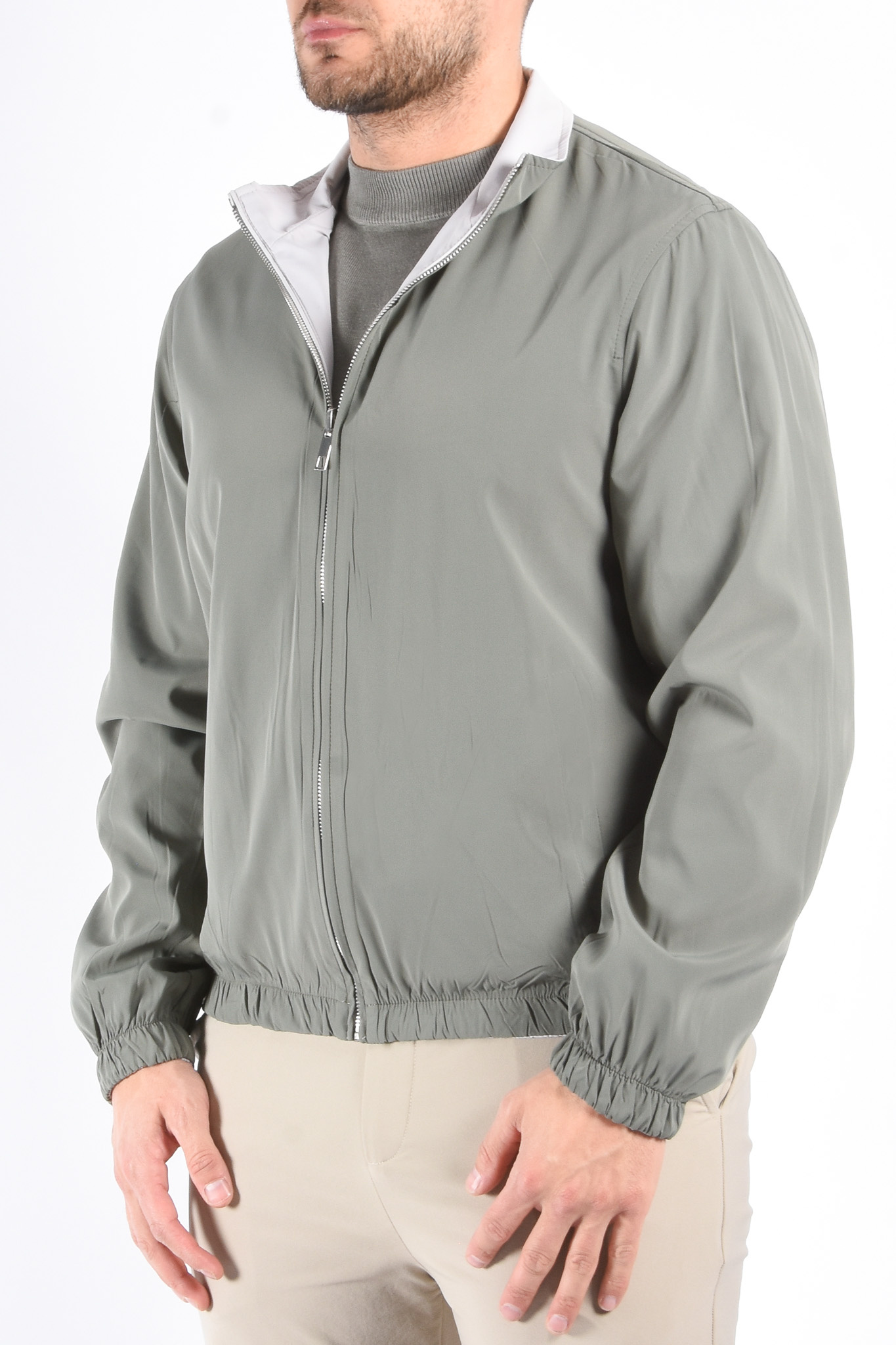 ProductomschrijvingPremium Reversible Jacket "Vazio" Greenish / Light GreigeModel: 179cm / 85kg Draagt maat L