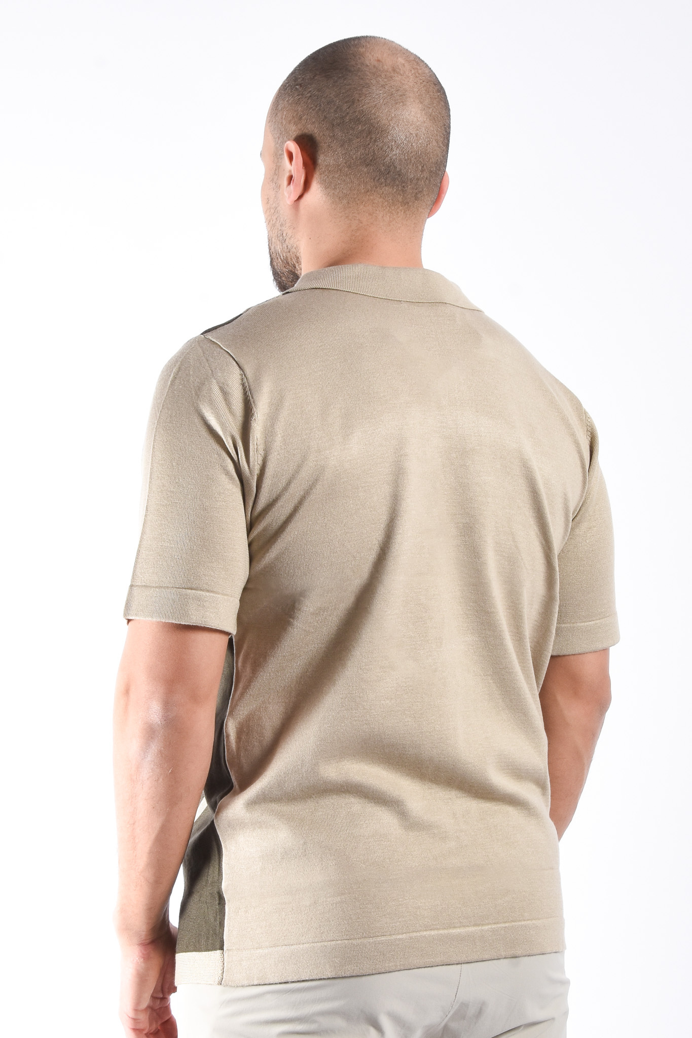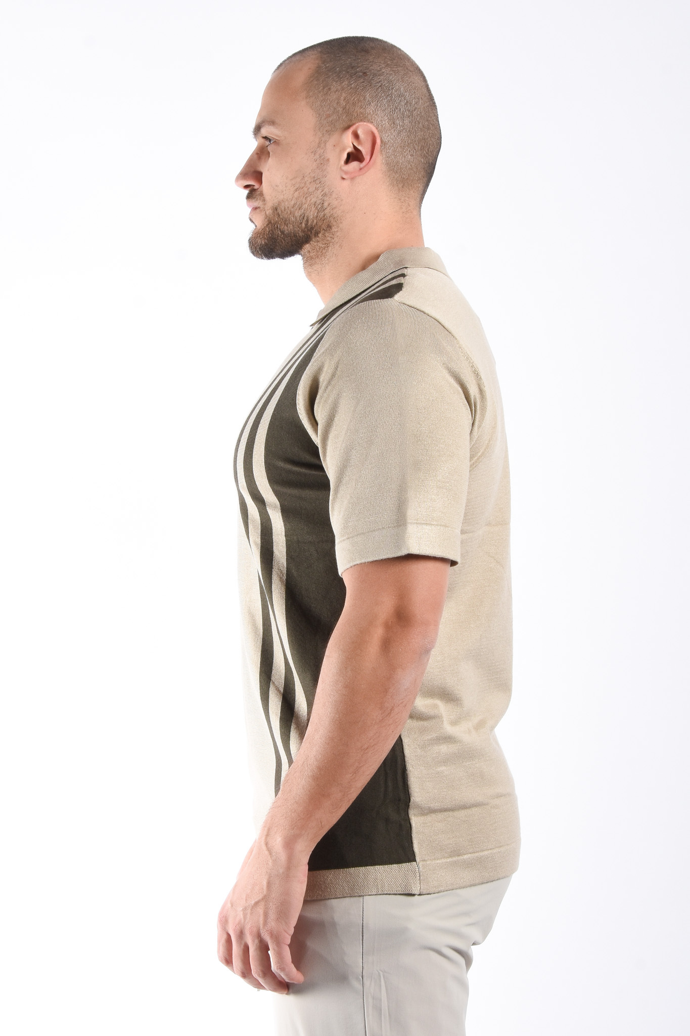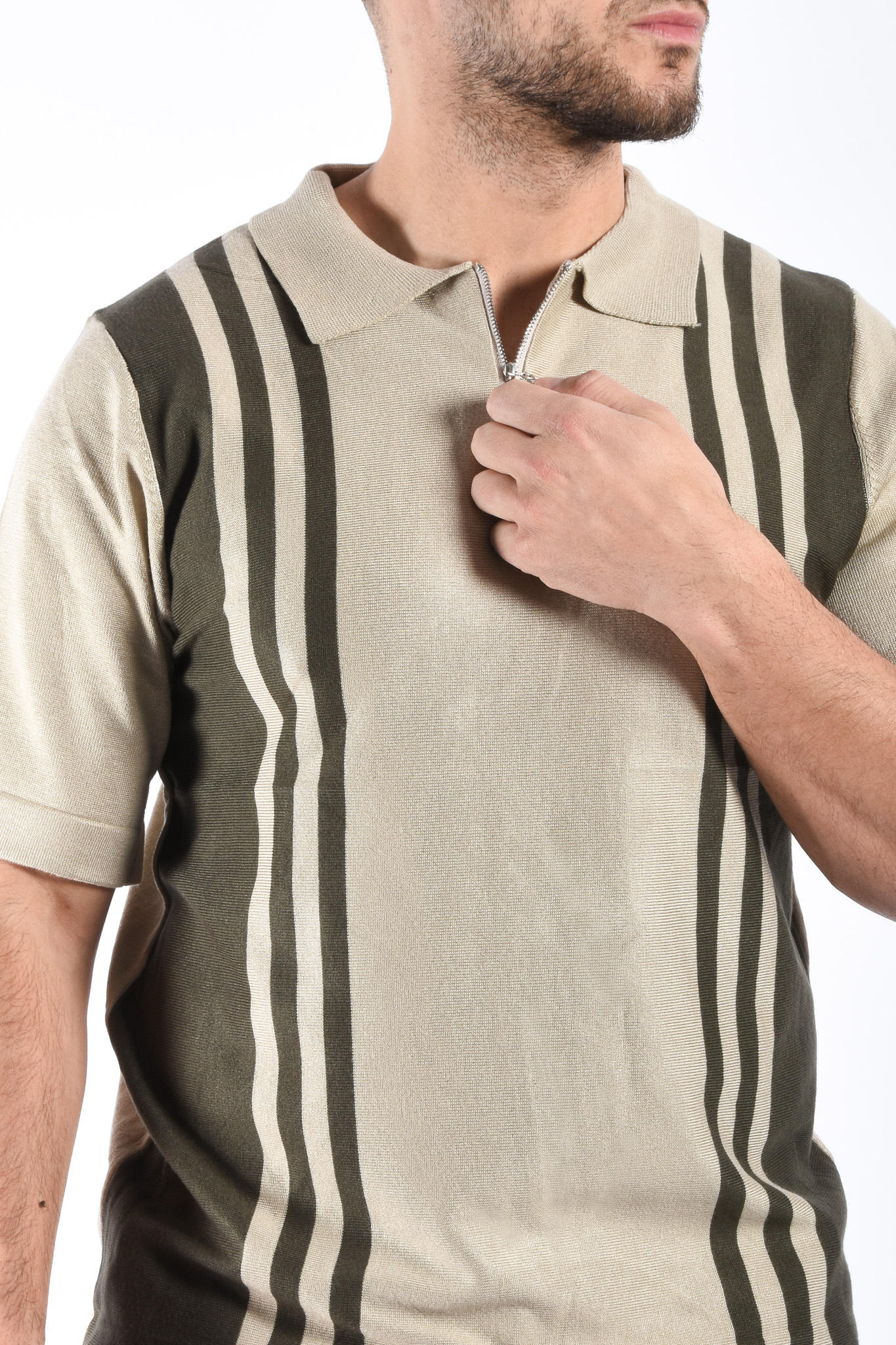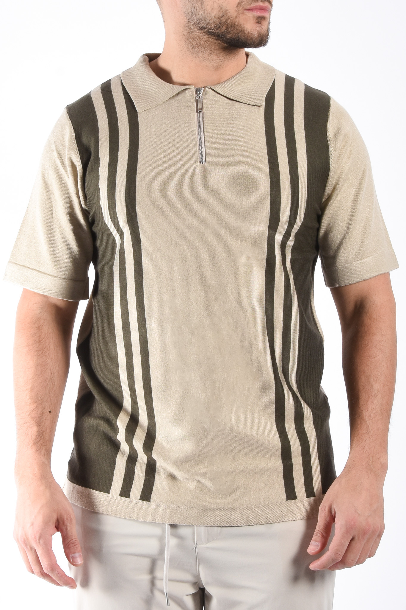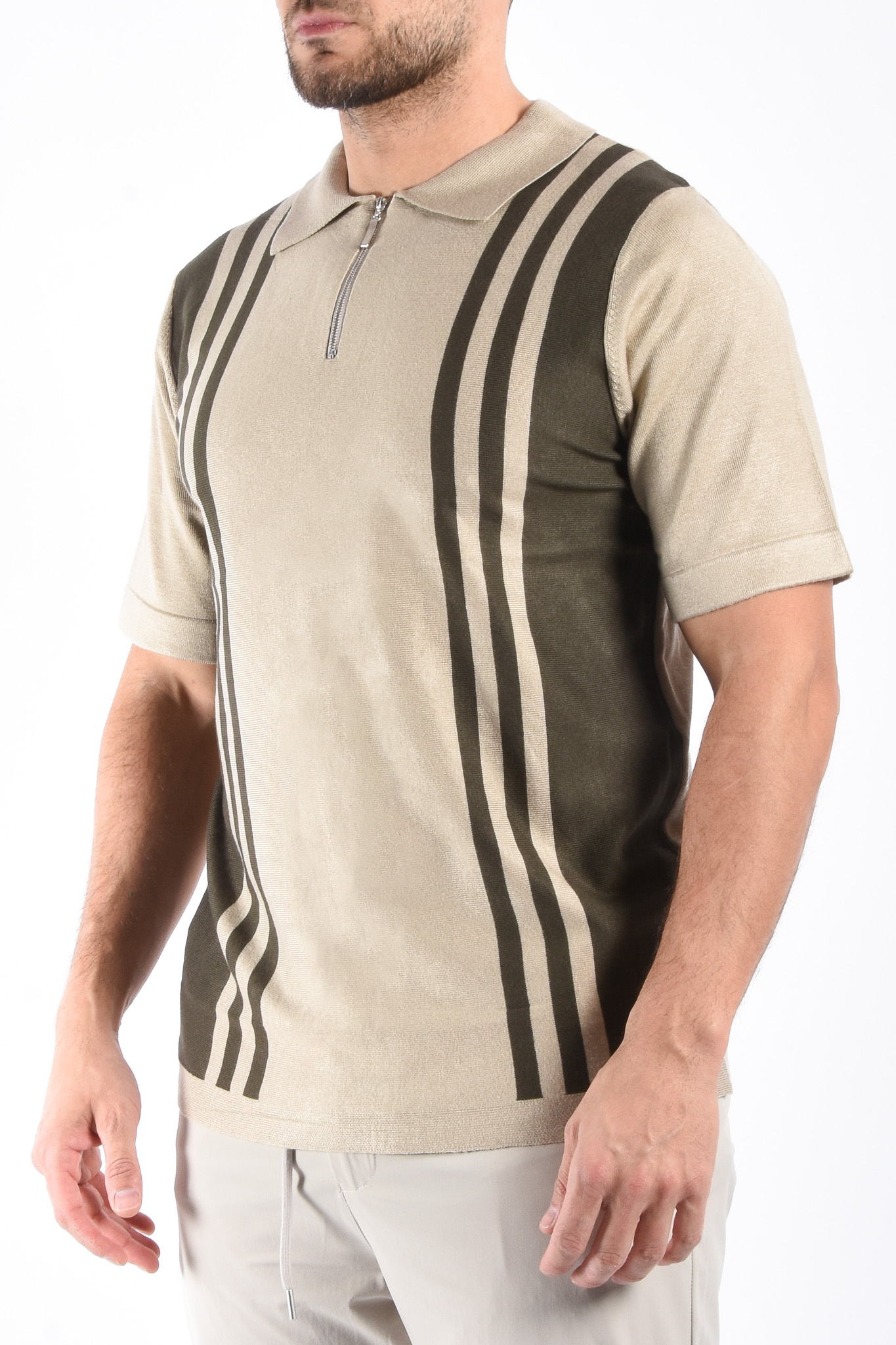 Striped Knit Zip Polo “Filip” Beige / Green
